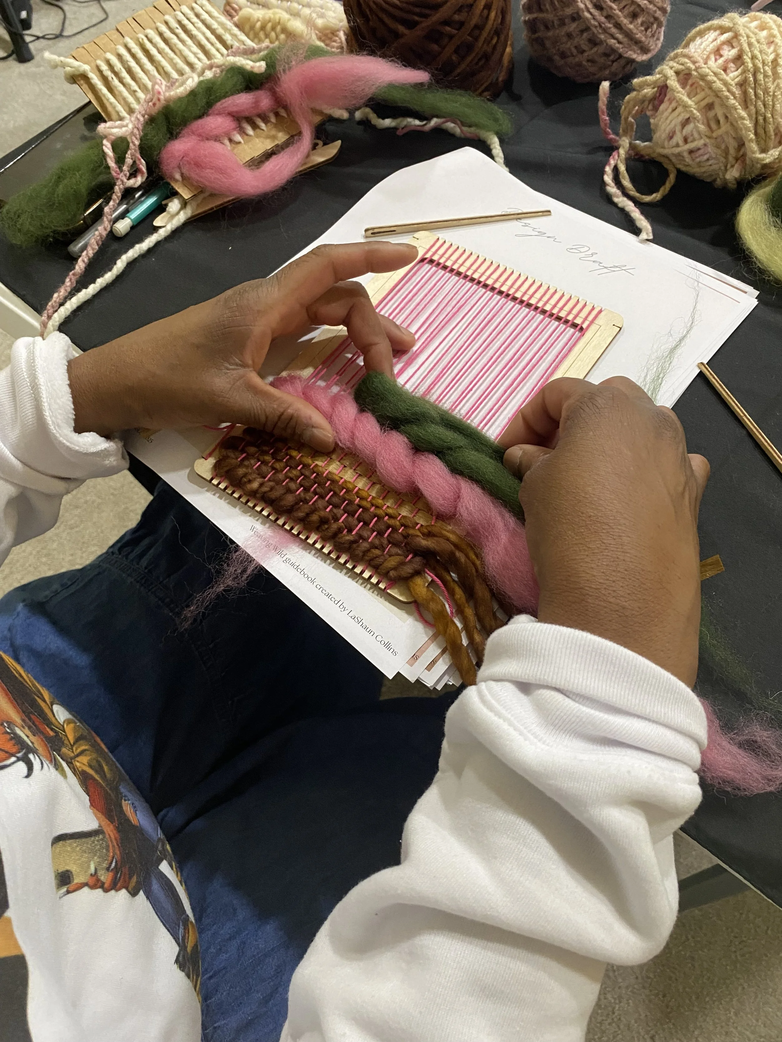 Weaving Wild is a beginner-friendly, hands-on workshop designed to introduce the foundations of frame loom weaving in an intuitive and expressive way. Over the course of 3–4 hours, participants will learn how to set up a loom, explore essential weaving techniques, and create a small handwoven piece to take home.